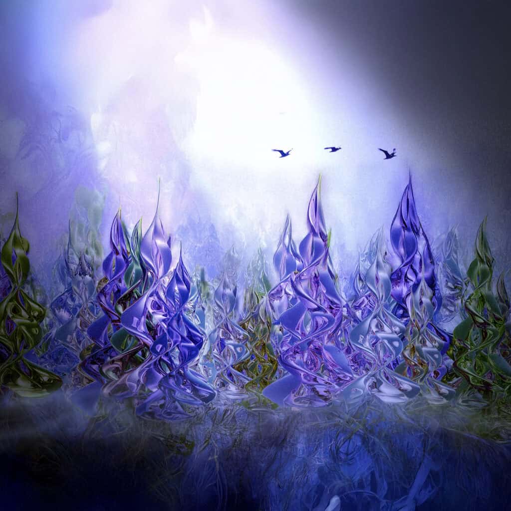January 28, 2025 Magic Forest by stevehaiman Spiraled shapes modeled in Blender geometry nodes and then taken into Photoshop. Lighting effects done with Flurbos overlays. Birds added with generative fill.Special thanks to MTR animation for his excellent tutorial on how to use matrix nodes in Blender 4.2 (https://www.youtube.com/watch?v=qHUkQa0OOy0) Category:2025 Blender Image, Blender, Photoshop